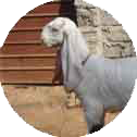 Conformation. Medium-sized animals. Coat colour is mostly white, but black and brown and combinations of these are also seen. Both sexes have large horns, directed upward and backward and occasionally twisted. Ears are medium long and drooping. The nose line is convex. The udder is small and rounded, with small teats placed laterally. The hair is white, lustrous and long."