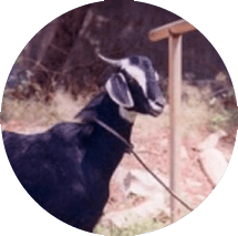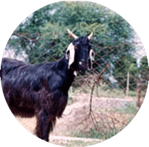 Conformation. Medium-sized animals. Predominantly black with long shaggy hair coat. In about 5% of individuals, white or brown patches are also observed. Beard is present in both sexes. Ears are flat, medium in length and drooping. Both sexes have short, pointed horns, directed upward and backward. Tail is small and thin. Udder is small and round, with small teats placed laterally.