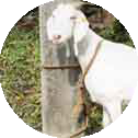 Conformation. Medium-sized animals. Body colour may be white, black or brown, with spots of the other colours. Ears are medium-sized and drooping. Both sexes have horns, directed backward and upward. Tail is thin and short. The hair coat is extremely coarse and short."