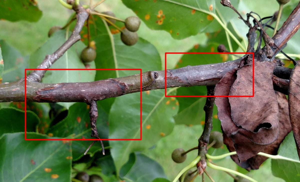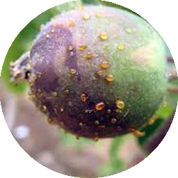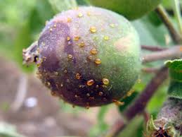 7. Infected small immature fruit becomes water soaked, then turn brown, shrivel,turn black and cling to the tree for several months after infection