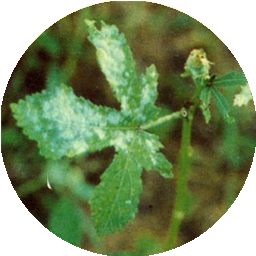 1. Yellowing of the entire network of veins in the leaf blade (vein clearing) is the characteristic symptom. In severe infections the younger leaves turn yellow, become reduced in size and the plant is highly stunted.