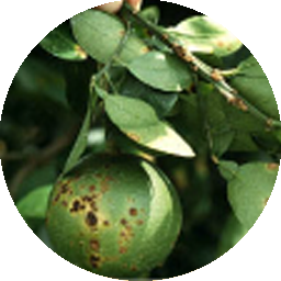 4.On acid lime and sweet orange leaves spot measure about 2 to 3 mm in diameter and are surrounded by a characteristic yellow halo