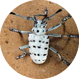 Grub bores the trunk at ground level horizontally up to the pith and then tunnels vertically and again horizontally for exit. Attacked trees gradually dry up .