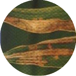 On the leaves, the lesions start as small water soaked bluish green specks, soon enlarge and form characteristic spindle shaped spots with grey centre and dark brown margin. The spots join together as the disease progresses and large areas of the leaves dry up and wither. Similar spots are also formed on the sheath. Severely infected nursery and field show a burnt appearance.