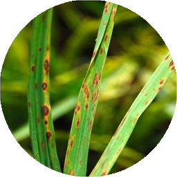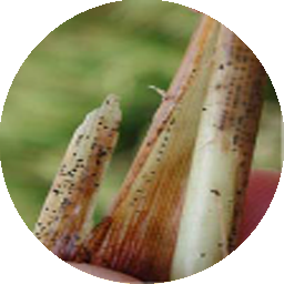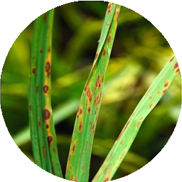 The fungus produces short, linear brown spots mostly on leaves and also on sheaths, pedicels and glumes. The spots appear in large numbers during later stages of crop growth. It may also occur as long and about 1mm narrow, short and dark on resistant varieties, but wide and light brown on susceptible ones.
